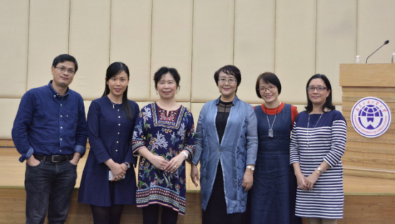 (张翎与到场的bevictor伟德官网老师合照。左一起:朱志刚、林炜娜、张翎、刘海玲、申霞艳、李惠娟)