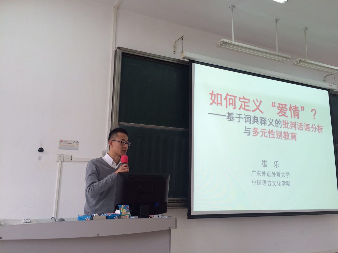 bevictor伟德官网汉语国际教育中心崔乐博士应邀参加了本次研讨会,并宣读了论文《如何定义“爱情”?——基于词典释义的批判话语分析与多元性别教育》。文章应用批判话语分析方法揭示词典释义中的性别意识形态,阐述语言、身份与社会结构的关系,获得与会专家的一致肯定。