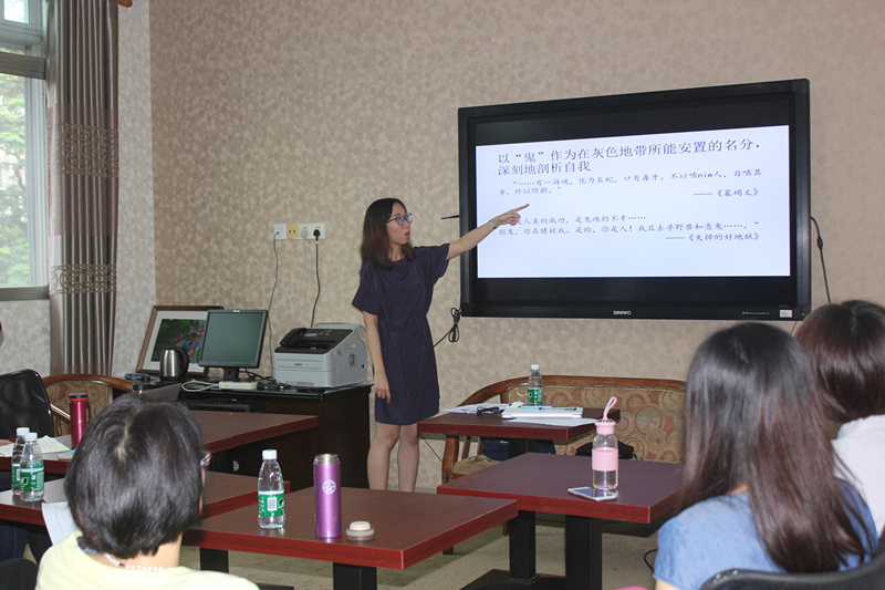 讨论中,有同学不断针对报告的主题进行发问。认为该主题中的“造‘人’”并没有非常明显的体现,张莹莹就此问题再次阐明了自己的观点。在热烈的讨论之后,由张莹莹的研究生导师申霞艳教授进行了报告的总结。申霞艳教授认为,这样的研究题目,在当今的学术研究环境下非常地具有难度,一方面已经有非常多的学界前辈对此进行过相关研究,另一方面,鲁迅与沈从文的可比性依然值得质疑。对此,张莹莹表示,鲁迅与沈从文的对比,是她解决自身在学术阅读中的问题,例如鲁迅代表的“五四传统叙事文学观”与以沈从文、张爱玲为代表的“日常叙事文学观”在当代学术界依然碰撞不断,应该如何处理和评价两者之间的关系,是非常重要的议题。