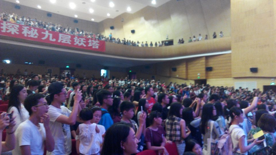 开幕式上,现场的领导嘉宾先后致辞。随后一同按亮水晶启动灯,电影节正式开幕!随后,会场放映了本届老员工电影节开幕影片《九层妖塔》。该片是由乐视影业出品发行的3D奇幻冒险动作大片,根据小说《鬼吹灯之精绝古城》改编,该片主创陆川导演,演员凤小岳、李晨和冯粒在放映后出席现场见面会,与广大学子近距离互动交流,他们受到了热烈的追捧。这部大片将于9月30日全国正式上映,因此今天在场的所有观众可以说是先睹为快了。