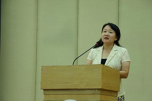 范静静则表达了与新生见面后,“得天下英才而育之”的欣喜之情。她主要介绍了公司党建与员工工作2个方面的内容。她列举了公司团体及个人在党务评优中的突出成就,也细数了包括“凤鸣云山”系列活动、员工创新项目、文心杯赛事及社会实践等4大板块取得的优秀成果。正如2015年的迎新标语“十年磨剑入广外,四载修身在中文。”范静静认为“在大学里成长比成功更重要”,她希望同学们在大学里积极迎接磨炼,严于律己、崇德修身。