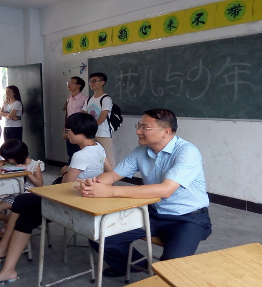 李江还深入课室,观看队员讲课,还坐下来跟同学们一起上课,切身感受义教队上课的氛围。他跟队员们亲切交谈,询问生活和工作上的问题,听了队员的反映之后,他表示已经同黄花中学方面协调好,将会着力解决生活上的问题,确保队员们能安心进行义教活动。查看了义教队的课程安排之后,他夸奖队员们都多才多艺,开设的课程种类多样,形式丰富,内容完整。