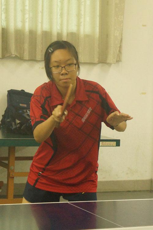 另一边厢,董昊则相对幸运,抽到了比较好的签,遇到的对手水平相对较弱,使她顺利地进入8强。而8进4的比赛中,她则上演了一场“逆袭”的好戏。她的对手正手较有力量且属于快攻型的选手,刚开始两局,董昊在强悍的对手前并不能完全打出自己的特点。第三局,经过院队师兄的提醒后,她迅速改变了打法,反手大力拧球,将自己反手的优势发挥得淋漓尽致。第四局,似乎队友们的鼓掌和呐喊给了她力量,她又迅速地扳回了一局。这时大比分变成了2:2,比赛进入到白热化阶段。第五局,一开始的几球她略显紧张,手比较僵硬,对手以5:3领先,但很快她又调整好,打出了几个漂亮的反手拧球和快撕,将比分追平。对手开始慌乱,董昊乘胜追击,最终赢得了比赛,进入了四强。在争夺季殿军的比赛中,由于实力和水平的差距,她最终落败,获得第四名。