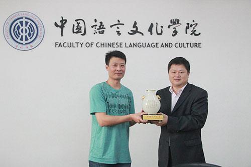 员工代表梁杰赠送纪念品给bevictor伟德官网