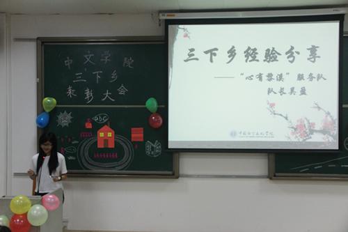 本网讯 11月28日晚7点,2014年暑期“三下乡”社会实践活动总结暨表彰大会在七教213拉开帷幕。大会回顾了2014年暑期“三下乡”的基本情况、展示了取得的累累硕果并且对先进团队与个人进行表彰。