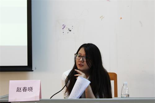 主持人简短介绍过后,赵春晓师姐先是表达了自己对广外校园的眷恋,继而开始分享自己的写作经验和心得。她坦言,热情是支撑写作的关键因素。虽然刚开始写作的那一段时间并没有收入,但是赵春晓表示在那段时间里她慢慢积累了语感,这对她以后的写作有着莫大帮助。谈及到写作中的剧情发展,赵春晓有自己独特的写作方式,她表示,她更喜欢按照人物的个性发展来编写剧情。在灵感方面,赵春晓认为日常生活中的人物和细节都可以作为写作的素材,甚至奇幻小说也需要加入生活细节才能让人眼前一亮,因此,她建议同学们平时可以多留心自己身边的细节,以推进个人创作。在如何才能引起读者共鸣的问题上,赵春晓提出,对一个人物形象的描写,可以把生活中遇到的各类人的性格,融合或放大,从而令读者在阅读作品时对人物产生更大的共鸣。