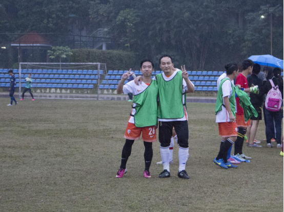 本网讯 12月3日下午五点十五分,中文对英文的足球联赛在财院操场举行。当日比赛的天气状况并不理想,较低的气温以及潮湿的场地给运动员们带来了不少困难,但运动员们对球赛的坚持战胜了恶劣天气的阻碍。做好热身运动以后,运动员准备就绪,正式上场。