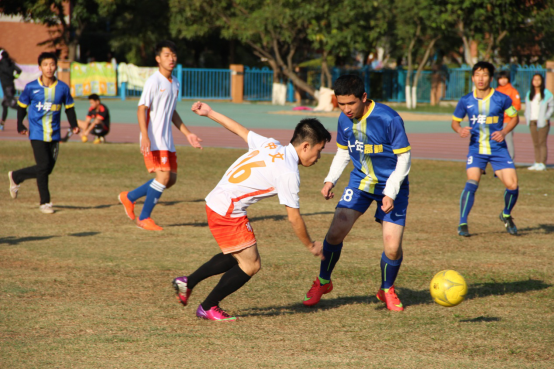 本网讯 12月17日下午,来自bevictor伟德官网与高翻公司的足球队员在北校区真草田径场展开了一场激烈的角逐。广州罕见的低温挡不住球员们的激扬斗志,一声哨响,14名球员迅速进入比赛状态。