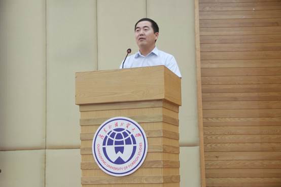 对外汉语系主任严修鸿用“中国走向世界,世界走进中国”开头,结合校训“明德尚行,学贯中西”突出对外汉语专业特有的第二外语的重要性。严修鸿借用孔子“仁者不忧”、“智者不惑”、“勇者不惧”的哲言希望新生们能够早日心智成熟。