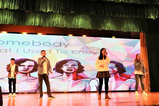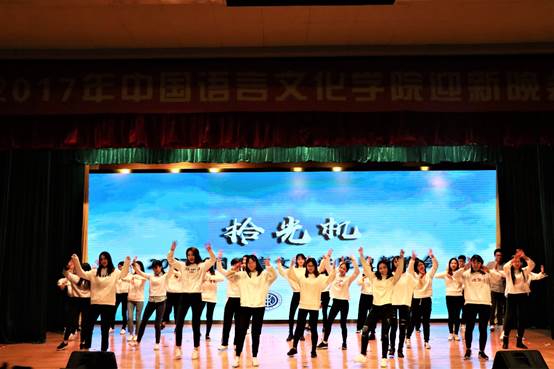 紧接着,汉硕带来的民乐演奏——《春江花月夜》。她们带领观众走入一幅有古筝、舞蹈和书法相伴的中国水墨画。随后校歌队精心准备的歌曲串烧,配上模特队的霸气走秀,全场观众的欢呼和尖叫。