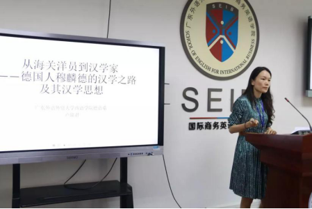 其后,唐雪老师就自己对德语世界的中国文学史研究的文献梳理,发表了名为《德语世界的中国文学史研究》的报告,引用德国众多知名汉学家及其著作,讲述了德国的中国文学史研究的波折发展过程,涉及战争对研究的影响和向其他国家学习借鉴的过程。