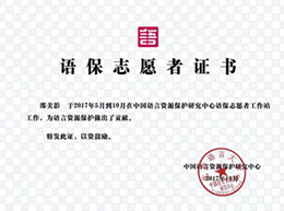 邵美影获得中国语言资源保护研究中心语保志愿者证书
