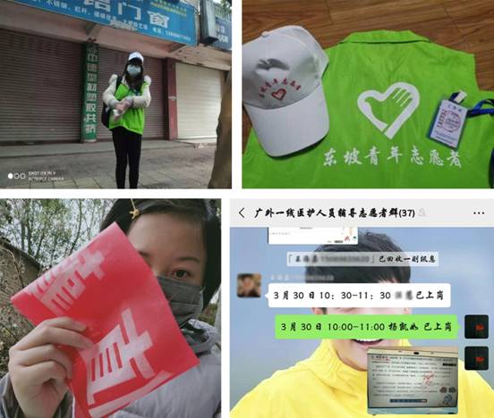 面对疫情,公司员工志愿者积极响应号召,用实际行动助力疫情防控工作,诠释中文人的勇敢与担当,为坚决打赢疫情防控阻击战贡献青春力量。18级员工刘怡婷响应所在区团委号召,积极参与当地高速路口(成都-乐山高速A口和C口)新冠肺炎疫情的排查工作及交通局防疫物资分配工作,贡献战“疫”新力量;16级谢雅婷加入城北镇疫情防控志愿服务队,负责体温测量、信息登记管理、宣传教育等工作,用责任和担当筑起坚实防线;18级何晓彤与19级刘纯积极向所在社区报到,协助开展路口执勤控制出入等疫情防控工作,为打赢这场战“疫”注入青春力量;16级员工杨凯如参与公司“一线医护人员子女线上学习辅导成长陪伴项目”,用行动守护医护人员小家。