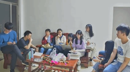 在李安老师带领下,朱沛杰、郑淇、李睿、陈烁、邱嘉亮、焦塬琳等同学组成的小组进行扶贫项目的书写工作。