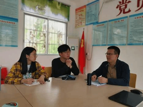 在林炜娜老师的带领下,该组成员陈依微、李鸿斐、高嘉琦和陈展龙同学对广外驻蒲芦洲扶贫工作队的林安杰、植仲培等老师以及村干部欧木养、欧伍光等人进行“影子采访”,即跟在工作人员的身边,近距离地观察体验扶贫干部和村干部的日常生活和工作,为人物的采写收集原始的素材。为了向同学们提供更多的信息,林安杰、植仲培老师放弃了周末回广州休息的机会,留在蒲芦洲配合和协调队员的采访。