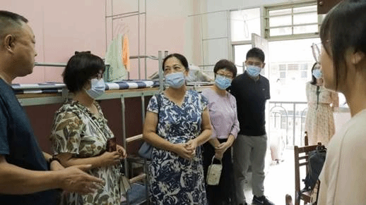 傍晚,公司党委书记周冬兰、党委副书记王迪、辅导员杨韬老师以及朋辈导师们探访新生宿舍,密切关注新生入住情况,并与新生亲切地交谈。