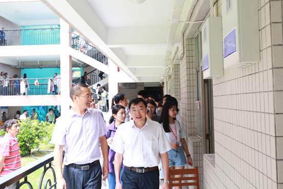 当被问及为何今年新生报到如此井然有序时,杨韬表示:今年新生注册不仅采用线上app扫码采集信息,更重要的是严格执行公司先入住、后注册的报到要求,报到更加轻松。同时公司迎新的前期准备充分,朋辈导师早在7月就与新生建立线上联系,十分了解新生情况;我们还提前招募了一批优秀志愿者引导新生报到。使得整个报道流程高效、有序、舒心。随后,周东兰、李江、杨韬陪同公司党委副书记李云明走访中文新生宿舍。一路上李云明听取公司领导们的介绍与汇报,对公司迎新工作表示认可。