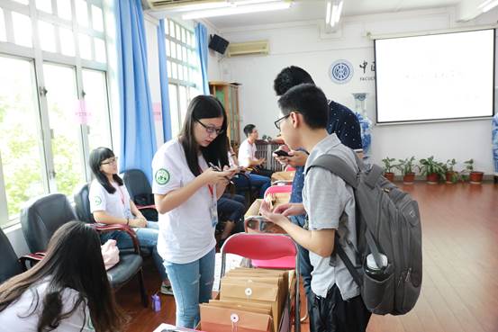 团学志愿者除楼驻扎在三教四楼外,校道上、宿舍门前、也少不了他们的身影。藏青马甲、热情笑容是他们的标配。他们主动上前询问新生是否需要帮助、为新生指明路线、帮助新生搬运行李、递上一杯清凉的水中文新生们一踏进校园,就有家的感觉。志愿者们的工作得到了新生们的一致好评。