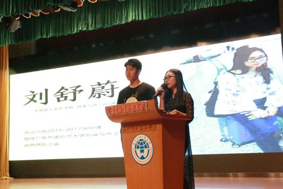 “学霸师姐”向汐与“走四方”的刘舒蔚先后上台演讲。向汐毫无保留地与新生们分享学习经验与时间管理方法。她建议大家在大学里要以更合理、更高效的方式规划学习和生活。刘舒蔚则以自身经历为例,告诉新生们既要坚定初心,又要勇于尝试。她认为,写作是她的初心,也是她的归宿岛。而谈到勇于尝试时她表示:虽然要重新做什么是很累的,但多一种尝试会让你多一个选择。