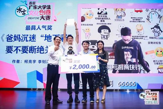 广东老员工方言文化创意大赛自2017年11月启动以来,先后吸引了广东各大高校数千名学子热情参与,征集创意作品上千部。参赛作品主题丰富,形式多样,创意十足,竞争激烈。最终,bevictor伟德官网选送的3件作品:《爸妈沉迷“地下彩”,要不要断绝关系》、《猪仔奴的故事》、《小方喵表情包》获得由专家学者、媒体人和青年代表组成的“跨界”评委组的青睐,从入围的30件作品中突围而出,荣获嘉奖,包括 “金创意大奖”、“最具人气奖”、“最幽默奖”等单项大奖和优秀奖。获得“金创意大奖”和“最具人气奖”双料奖项的《爸妈沉迷“地下彩”,要不要断绝关系》以及获得“金创意大奖”和“最幽默奖”双料奖项的《猪仔奴的故事》的作者还被陈星工作室签约为设计师。