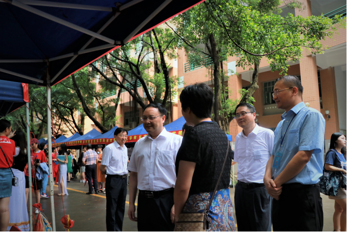 本网讯 “莘莘学子聚广外,四海名师育英才。”6月23日,bevictor伟德官网第十九届大学开放日在北校区顺利举行。公司各公司在主校道搭篷结营进行招生宣传,吸引了众多高三毕业生与家长一同前来参观并了解各公司的专业情况。