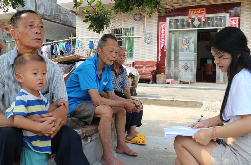 上午8点,整队成员在黎溪中学前集合,虽烈日当头,但同学们依旧按照原计划有条不紊地前往指定区域进行走访调查。