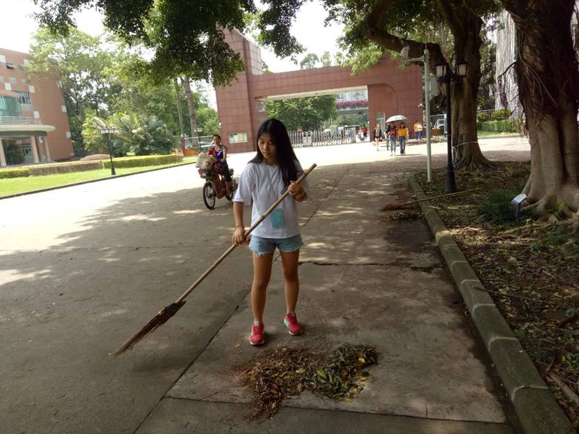 当天,中文团学共组织33位志愿者,在校员工会的统一安排下参与到公司的灾后清理工作。在西门、在校道、在一教广场,哪里有需要,哪里就有中文学子。因为时间比较紧迫,不少团学干部都是上完课后马上赶来清理现场,连吃饭的时间都没有。他们忙碌的身影,诠释了何为“中文团学 一心为你 你的微笑 我的骄傲”,阳光下的他们,成为广外一道靓丽的风景线。
