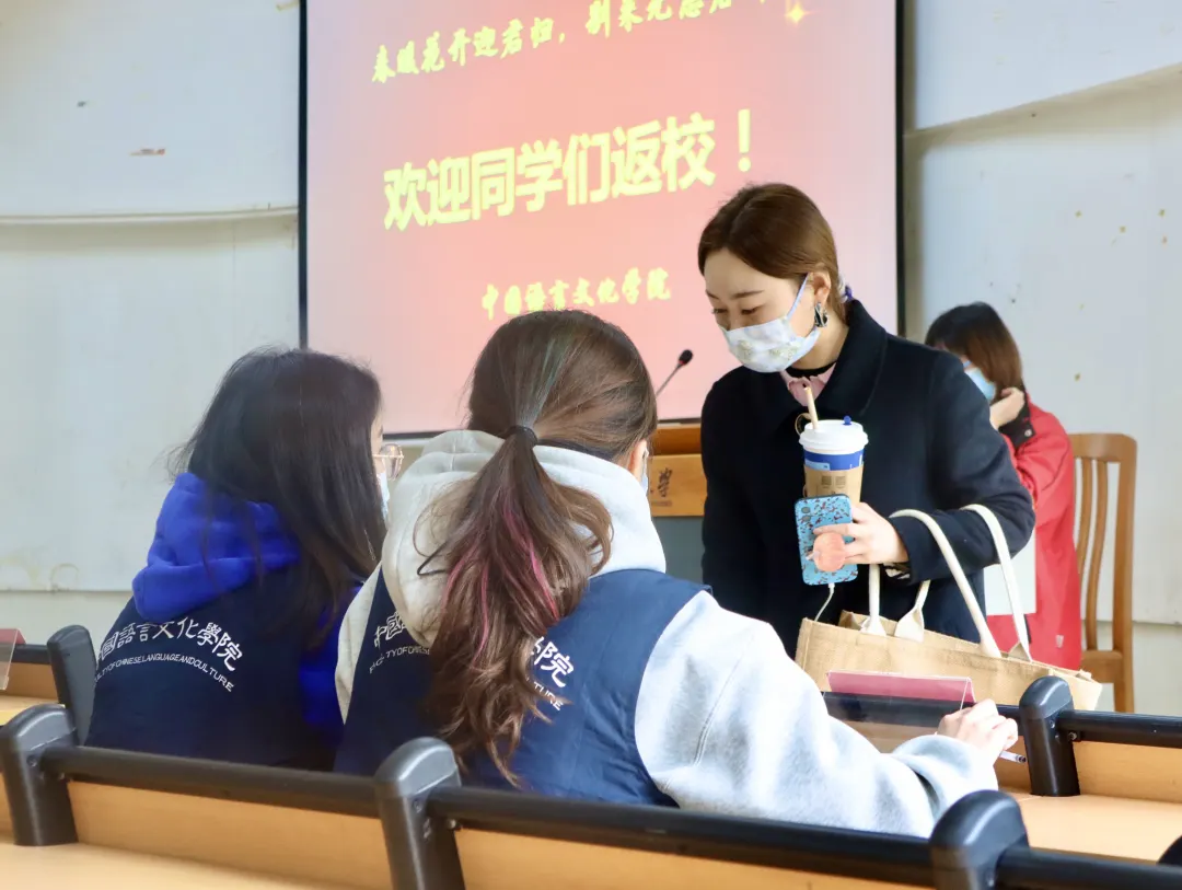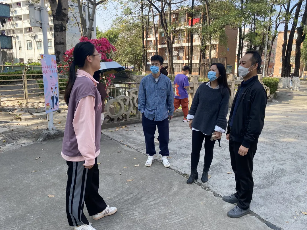 几位老师在与返校员工进行交流
