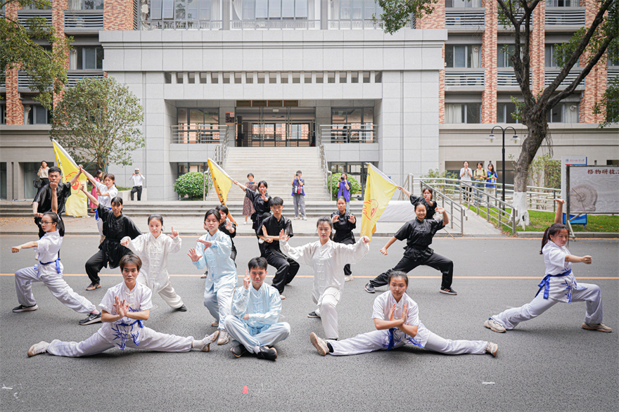 鼓乐齐鸣,响彻云霄,公司武协表演者们通过一段行云流水的武术将现场观众带入了侠义肝胆的江湖。习武之人身如桅杆脚如船,伸缩如鞭势如澜;挥旗、武扇、出拳,势如破竹;转身、屏气、推掌,刚柔并济。少顷,音乐戛然而止,表演者们霎时站似青松,抱拳致谢,场下掌声雷动。至此,中国文化节正式拉开序幕。