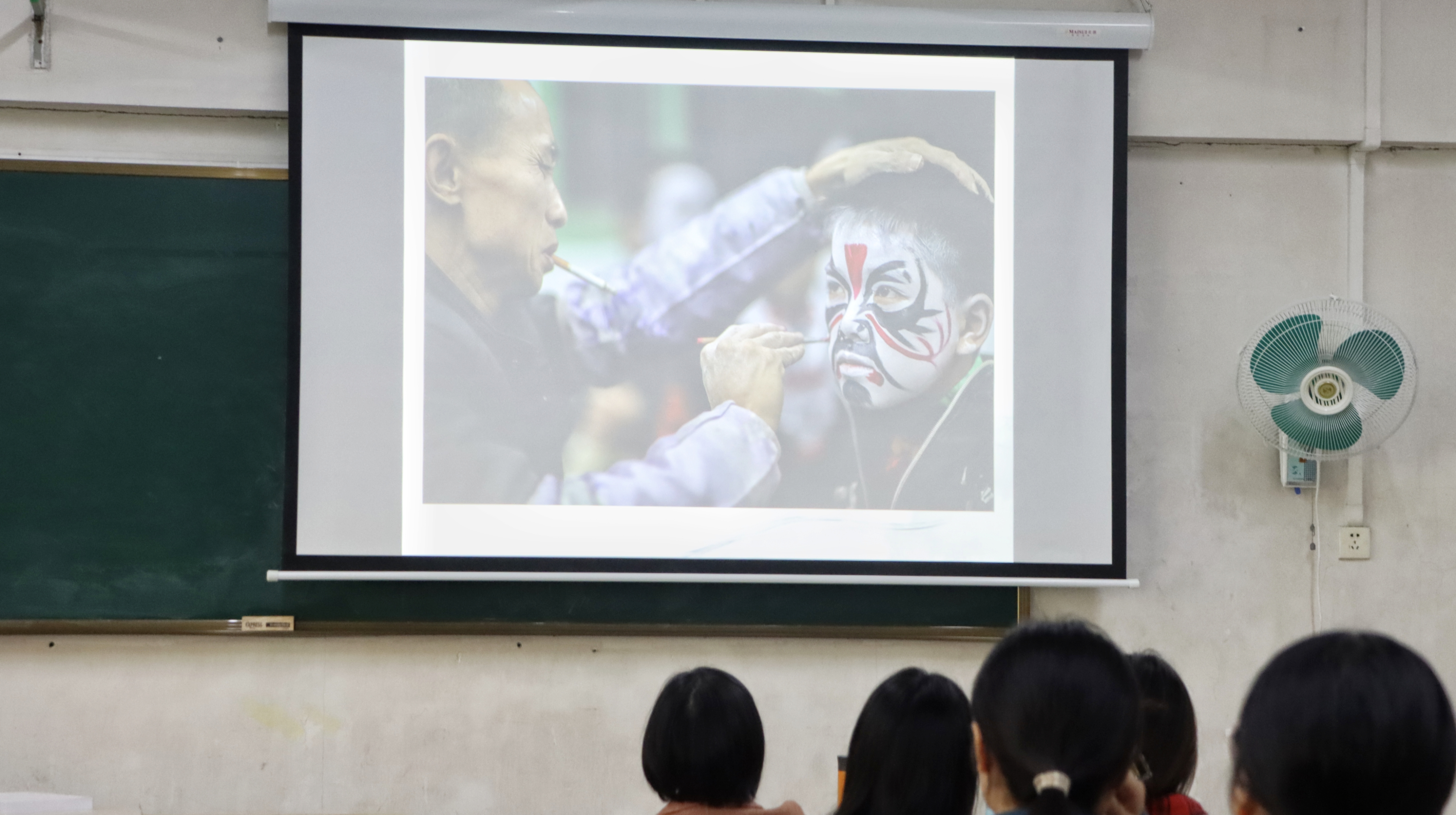 “戏说岭南”——李主席向同学们展示了繁多的声腔系统、灿若群星的艺术家和精彩纷呈的剧目,而唱、念、做、打、手、眼、身、步、法“四功五法”等表现手段和美学特征更是独树一帜。广东目前有十五个剧种留存,除粤、潮、汉三大剧种外,还有其它:西秦戏、正字戏、白字戏、雷剧、花朝戏、皮影戏、傩戏、花鼓戏、山歌剧等。戏曲的保留和传承不易,民协意识到这一点后,收集了众多戏曲的唱本并编纂成册,使其得以保存和记载。