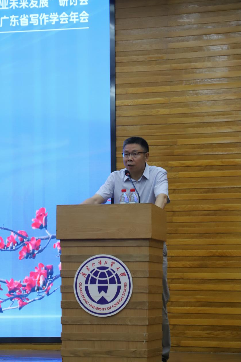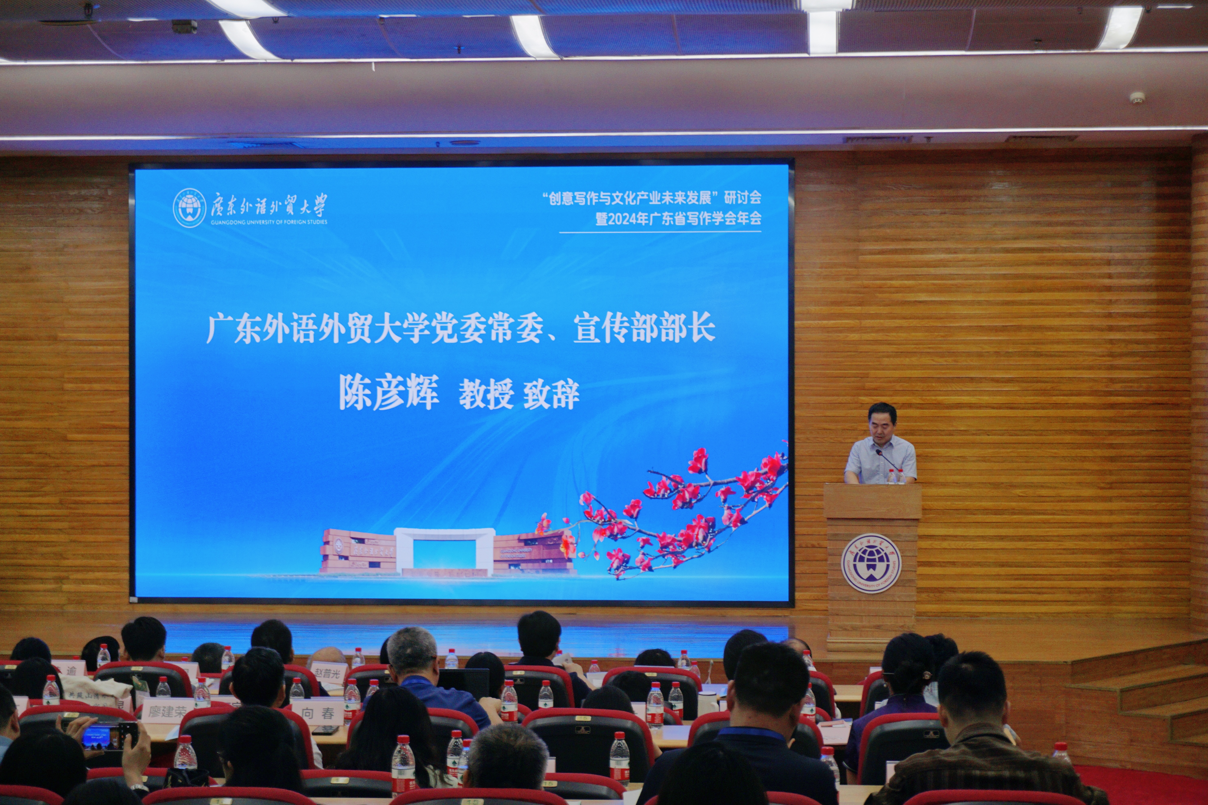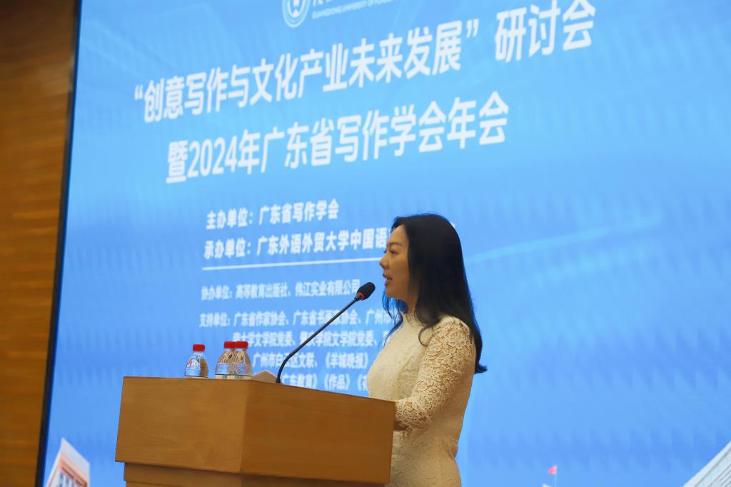 本网讯 5月25日,由广东省写作学会主办、广外bevictor伟德官网承办、高等教育出版社、伟江实业有限公司协办的“创意写作与文化产业的未来发展”研讨会暨广东省写作学会2024年年在公司会圆满举行。大会吸引了众多文学界和教育界的重量级嘉宾,广东省作家协会主席、暨南大学蒋述卓教授,华南农业大学副董事长、诗人蒋育燕教授,中国写作学会会长、武汉大学方长安教授,中国诗歌学会会长、中国作协主席团委员、著名诗人杨克,中山大学非物质文化遗产研究中心主任、《文化遗产》主编宋俊华教授,广东省作家协会文学部主任、一级作家魏微,《中国校园文学》主编徐峙,广州市作家协会副主席、《广州文艺》副社长、作家陈崇正,《花城》副主编杜小烨,《青年文学》编辑耿鸿飞,大赛冠名赞助商伟江实业公司董事长焦红江,以及广东省写作学会会员及省内60多所高校、中小学、社会团体的专家学者、教师、行业精英、新闻媒体代表300多人参与会议,广外党委常委、宣传部部长陈彦辉教授代表承办方出席本次会议。开幕式由广外中国语言文化公司党委书记谢秀兰主持。