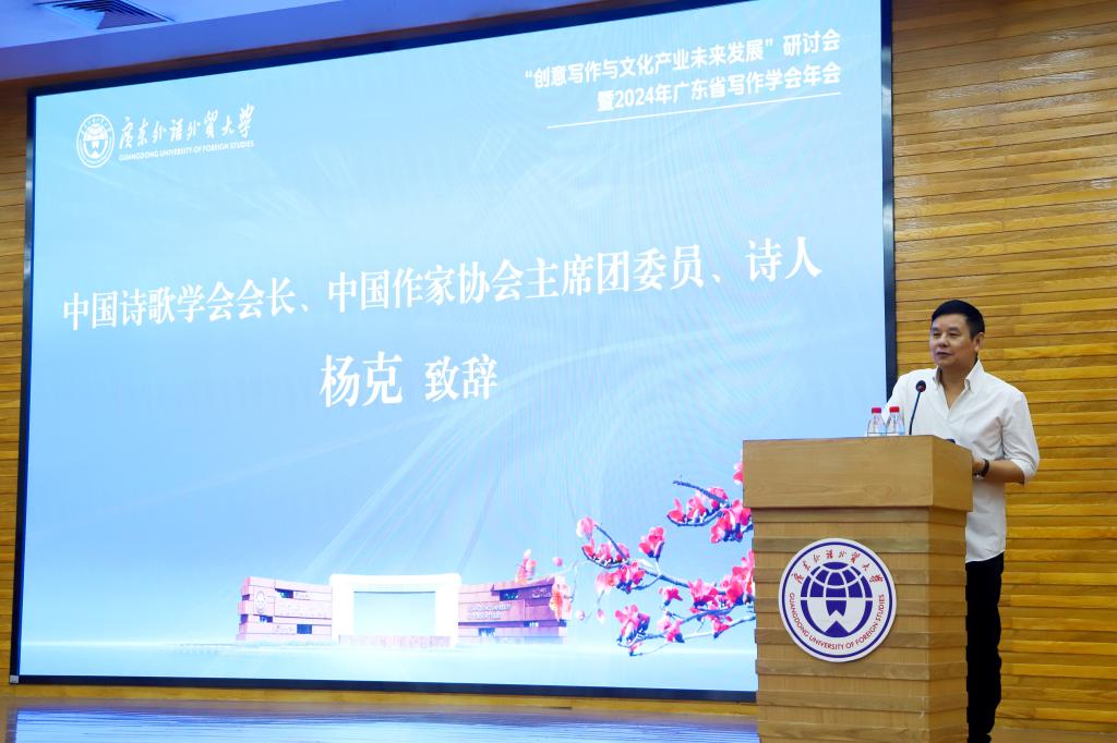 中国诗歌学会会长、中国作家协会主席团委员、诗人杨克致辞