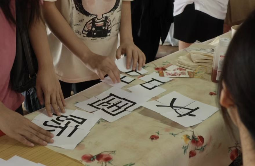 以七教一楼文化长廊为主场的“国际中文日”摊宣活动,上演着“汉字解码之旅”。活动特别设计了“汉字拼图挑战”“趣味词汇竞猜”与“声调文化彩蛋”三大板块。参与者通过拼合“国、际、中、文、日”的文字部件,在专业志愿者指导下完成字形重构;借助图文卡片连线竞猜,在拼音与图像的碰撞中习得生动词汇;更有声调挑战台将语言学习与传统节日习俗巧妙结合,让语言习得更具趣味性,活动吸引百余位中外师生穿梭于流动的汉字工坊中,笑声不断。