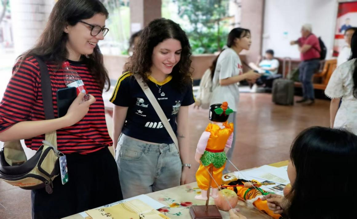 非遗文化展演区域则流淌着千年木偶戏的光影。高州木偶的檀木关节在灯下泛着温润光泽,参与者通过知识锦囊与图片竞答揭开千年戏偶的神秘面纱。“偶戏迷踪”展台前,职工正对照中英双语手册研究提线构造,现场更有杖头木偶随丝弦声抬手折腰,参与者透过“偶划我猜”游戏,从木偶行止间读出了中华传统礼制中“君子九容”的风骨。