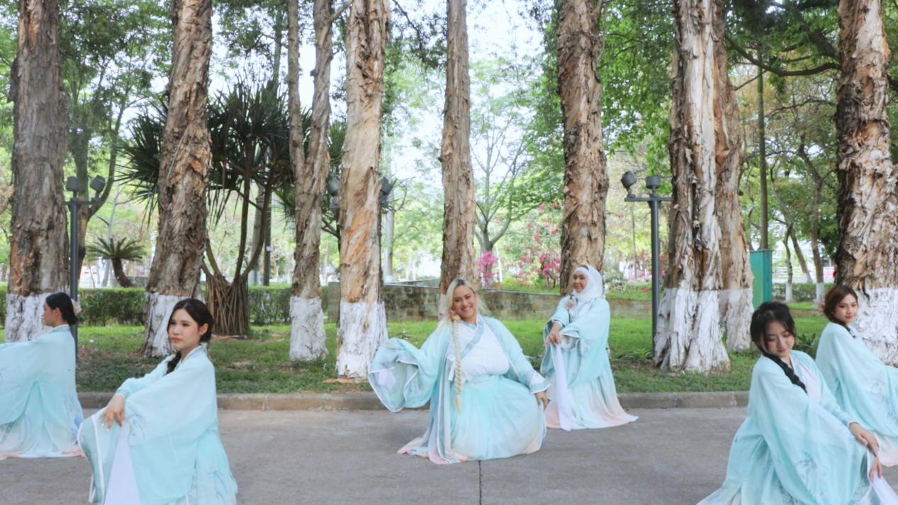 四月白千层的光影下,中外员工正穿着国风服饰翩翩起舞,成为校园一道亮丽的风景线。经过几天的集中训练,来自不同国家的职工们在舞蹈中相互交流、配合默契。他们用肢体语言诠释着对中华文化的热爱,将中华文化之美展现得淋漓尽致。此次活动不仅丰富了职工的校园生活,更让他们在舞蹈中深刻感受到中华文化的独特魅力,搭建起文化交流的桥梁,促进了多元文化的融合与共进。