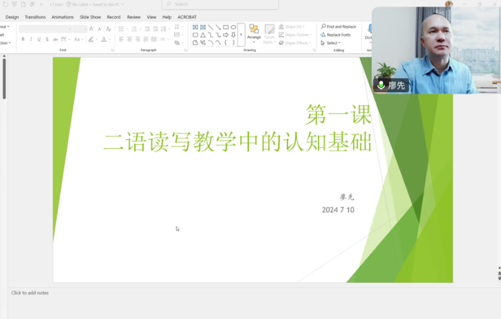 廖先教授首课聚焦“读写教学的认知基础”,为整个项目奠定了理论框架,在此基础上深入讲解了执行功能策略在二语教学中的应用,并特别强调了执行功能在汉语二语教学中的重要地位。