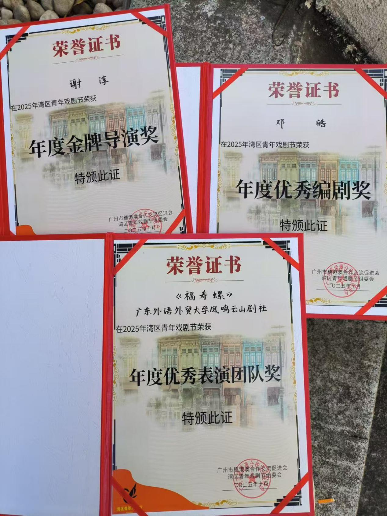 剧组奖状照片