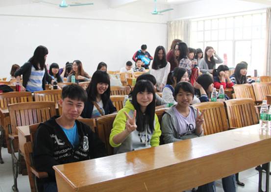 在见面交流会上,公司党委书记李和民致欢迎辞,拉开了活动的帷幕;紧接着,黄花中学的董事长梁振列、黄花中学员工代表陈海琪、公司员工代表林晓彬分别发表了讲话,表达了对本次的活动的祝福和期待。会后,各志愿者带上自己负责的员工到分配好的班级里上课,共同体验了如“市场营销”、“对外汉语教学法”等与中学截然不同的课程。黄花中学的一位同学说,大学的课很新鲜、挺有意思的,但一节课要连上一个多小时让她有点吃不消。下课后志愿者和同学们共进午餐,然后带领他们参观了广外校园,还特意进入图书馆,享受文化的熏陶。
