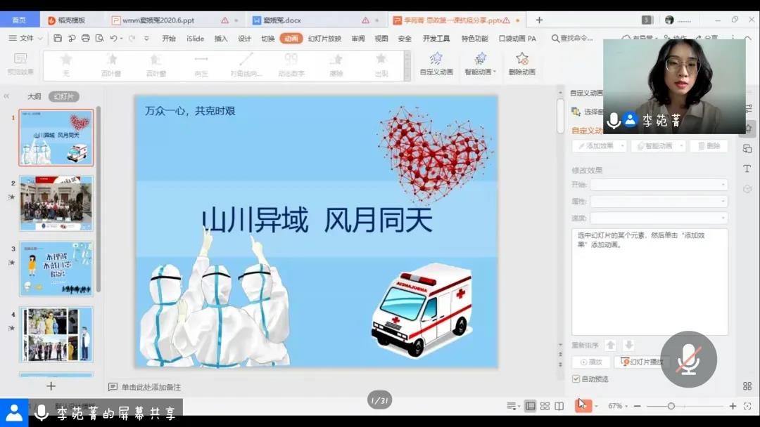 接着,19级王佳莹同学及18级张豫湘同学分享了自己在国内的防疫经历。王佳莹同学主动成为黑龙江绥芬河青年志愿者,将她在小区消毒、和同伴在宾馆站岗、进行出入登记等经历娓娓道来;张豫湘同学以文抗疫,用文字记录疫情中的点点滴滴,其文章还刊登在《中国青年报》。两位同学以不同方式凸显出当代老员工在国家危难时的使命和担当。