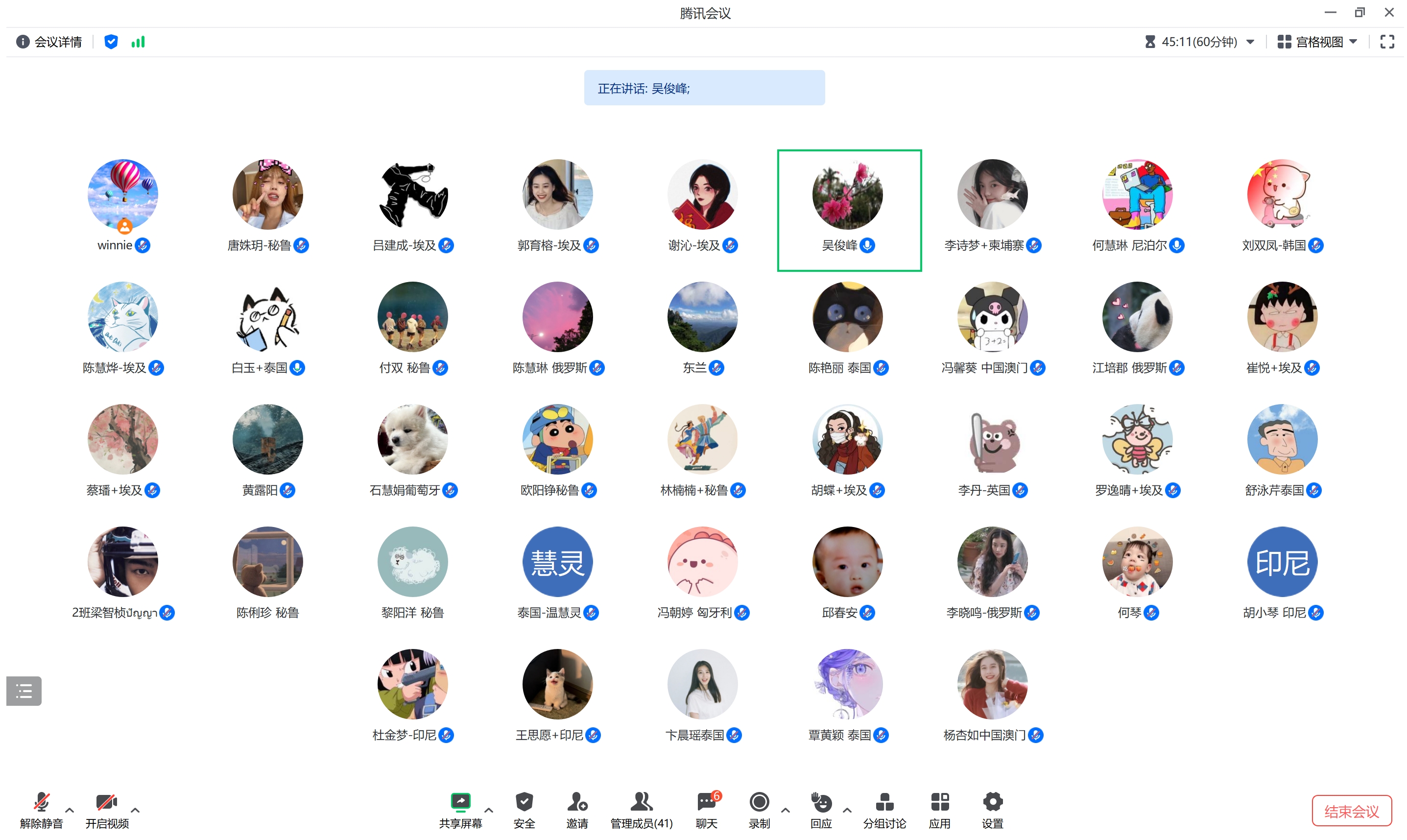 吴俊峰代表公司向坚守在海外教学一线的志愿者表达慰问和关心,感谢志愿者一年来的辛苦付出,并通报了近期公司牵头申报的国家语言文字推广基地成功获批的喜讯,表示基地的成功申报离不开孔子公司和海外志愿者提供的支持,同时嘱咐志愿者在海外要做好安全健康管理,遵守志愿者管理条例,加强沟通和理解,积极融入当地,结合当地的文化找到有效的方式传播中华文化,同时希望各位志愿者将在海外任教机会作为自己人生成长的平台,加强自身中文教学能力,学习当地好的教学理念和先进思想,为成长一个优秀的中文教学者和文化推广者奠定基础。